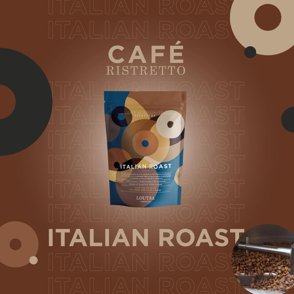 Pour l’élaboration de notre nouvel assemblage signature Italian Roast, toute la complexité a été de créer un mélange et un profil de torréfaction s’approchant de ce qui se fait de mieux chez nos voisins italiens, tout en restant fidèles à nos valeurs : une torréfaction respectueuse du grain, et la mise en valeur de nos purs arabicas d’altitude.En dégustant notre breuvage italien, subtil mélange de nos meilleures sélections, vous embarquez pour un voyage de saveurs !